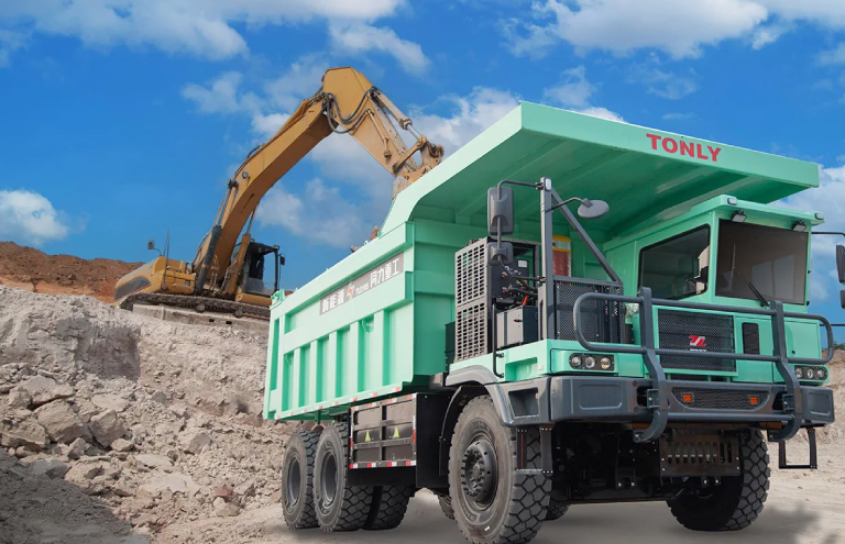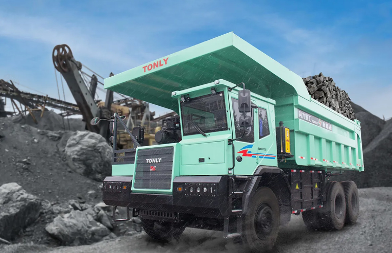 Camión volquete minero de ingeniería de transporte de corta distancia, cero emisiones y cero contaminaciones, desarrollado por Tonly en respuesta a los requisitos nacionales de ahorro de energía, reducción de emisiones y protección ambiental, integrando años de investigación y desarrollo de camiones volquete mineros de nueva energía.